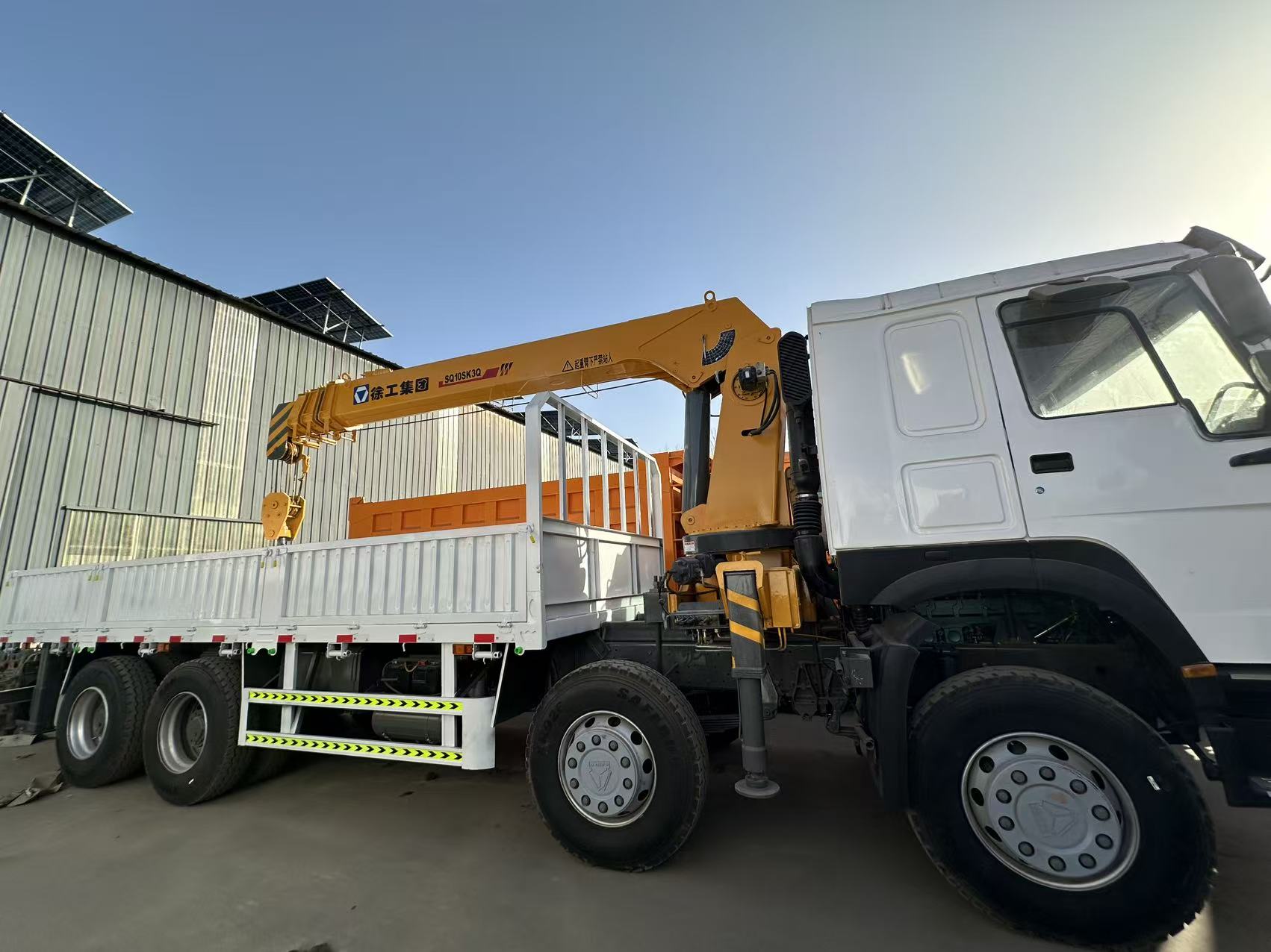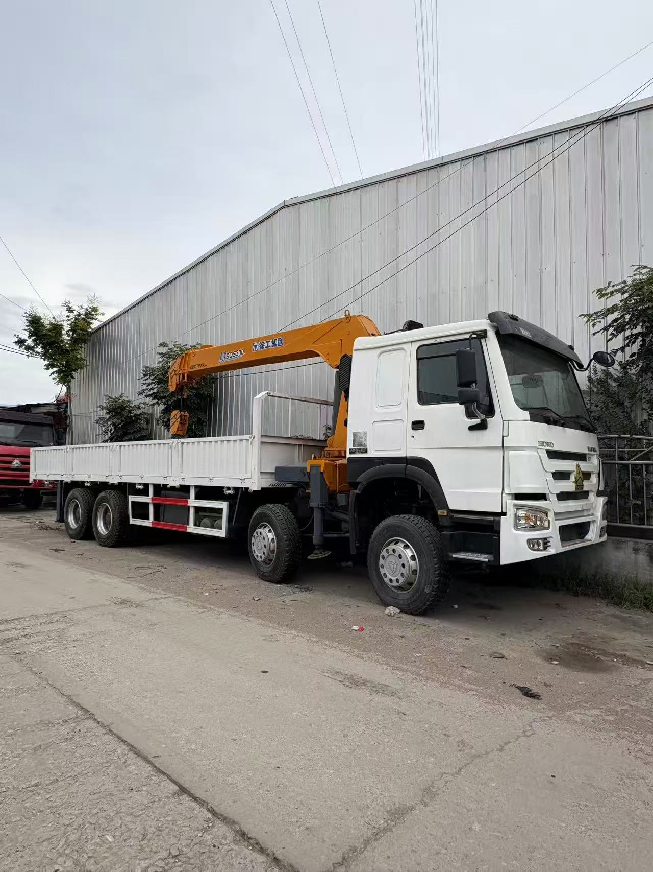 Sinotruk Howo 8*4 Straight-Arm Crane Truck: Sinotruk 375 National III Engine, Sinotruk 10-speed Transmission, XCMG 10-ton Crane, Front Axle 9-ton Disc Brake, Rear Axle AC(HC) 16-ton, Tire 1200R-22.5